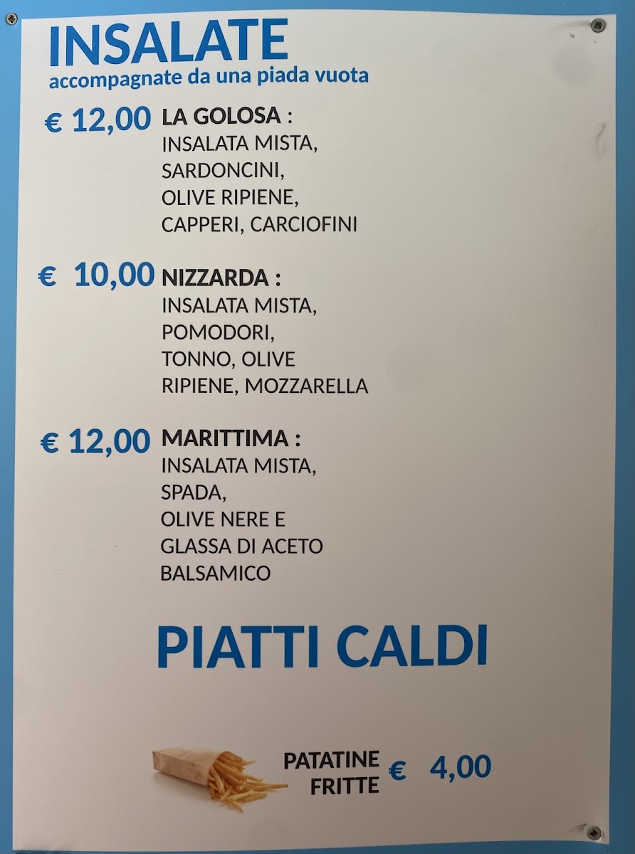 Unique Offerings: Their piadina, especially paired with freshly cooked sardoncini, is a highlight that never disappoints.
